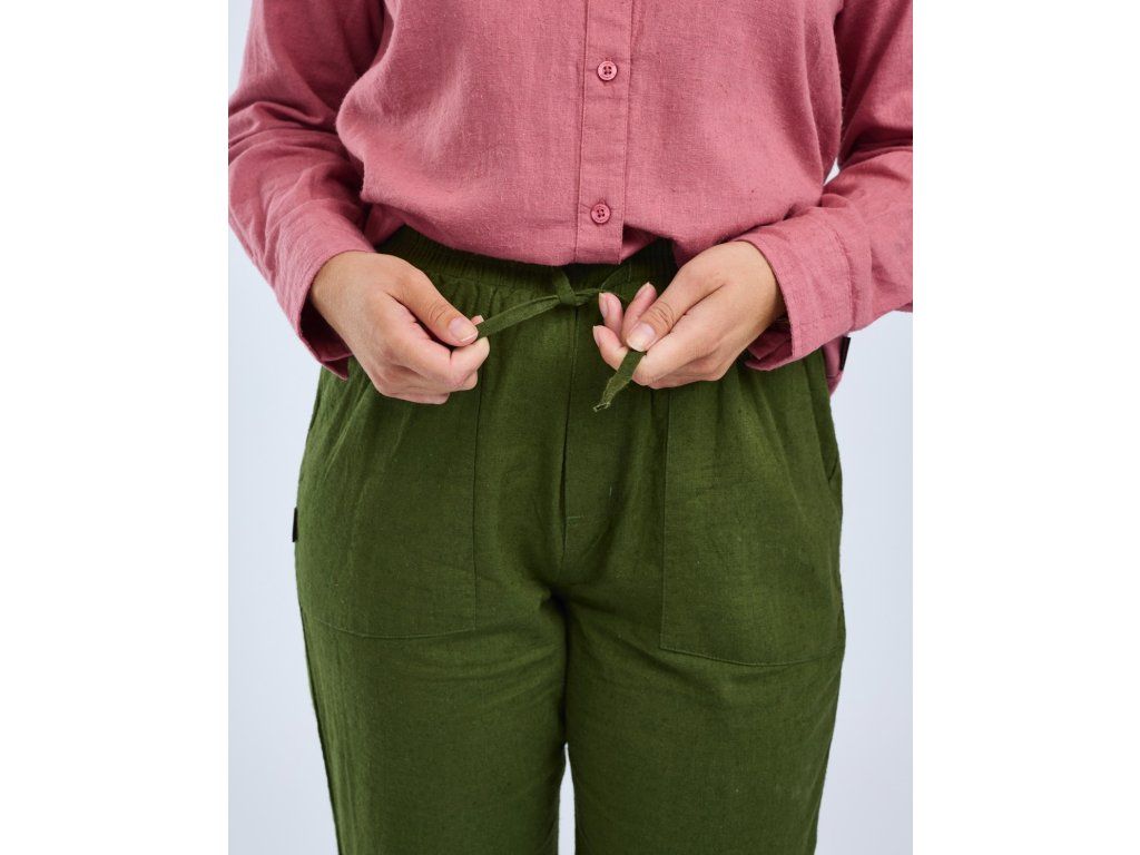 Tyto kalhoty z lněné směsi spojují klasický design s praktickou funkčností. Přírodní materiál je prodyšný a na pokožce působí měkce a chladivě, a to i v teplých dnech. Jsou nenáročné na údržbu a pohodlné na nošení, takže se skvěle hodí pro letní dobrodružství. Díky gramáži 142 g/m2 a impregnaci, která pomáhá chránit proti komárům a klíšťatům, jsou chytrou volbou pro turistiku, kempování i pohodové večery venku. Kalhoty mají otevřené přední i zadní kapsy a nastavitelné stahovací šňůrky v pase a na koncích nohavic pro pohodlné přizpůsobení postavě.
