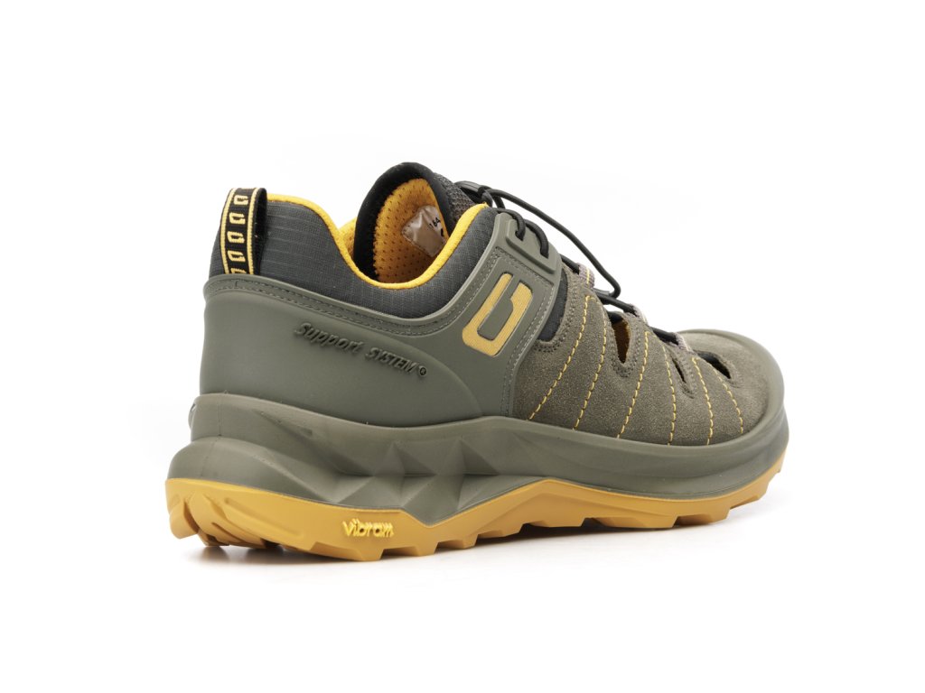 Nová kolekce Grisport Adventure se vyznačuje pohodlím, mj. díky ultralehké PU mezipodešvi, do které byly přidány mikro vzduchové bublinky. Nášlap i došlap je tedy velmi měkký a komfortní. Hloubkově profilovaná pryžová podešev Vibram poskytuje zvýšenou přilnavost v terénu. Svršek je z kvalitní broušené usně. V patní části se nachází zdokonalený patentovaný Support System pro efektivní podporu kotníku a fixaci chodidla v obuvi. Tento model má také vyztuženou špičku pro lepší odolnost a ochraně proti okopu.