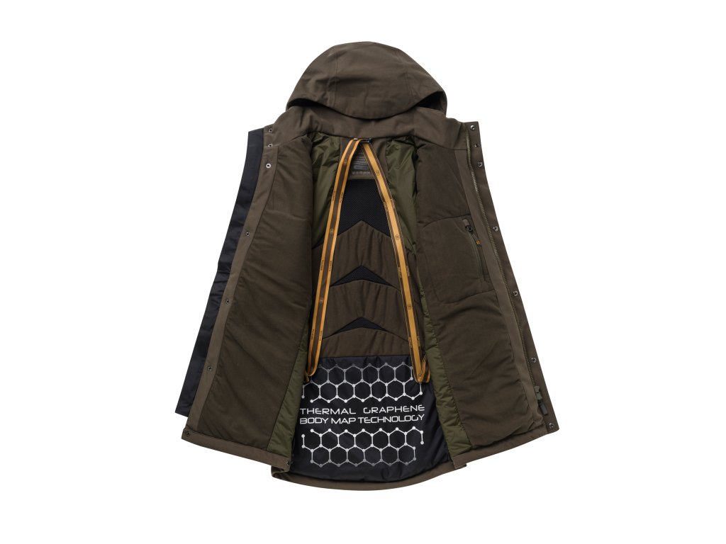 Je voděodolná a prodyšná, vyrobená s podšívkou v technologii Thermal Graphene Body Map, která zajišťuje maximální tepelnou izolaci.