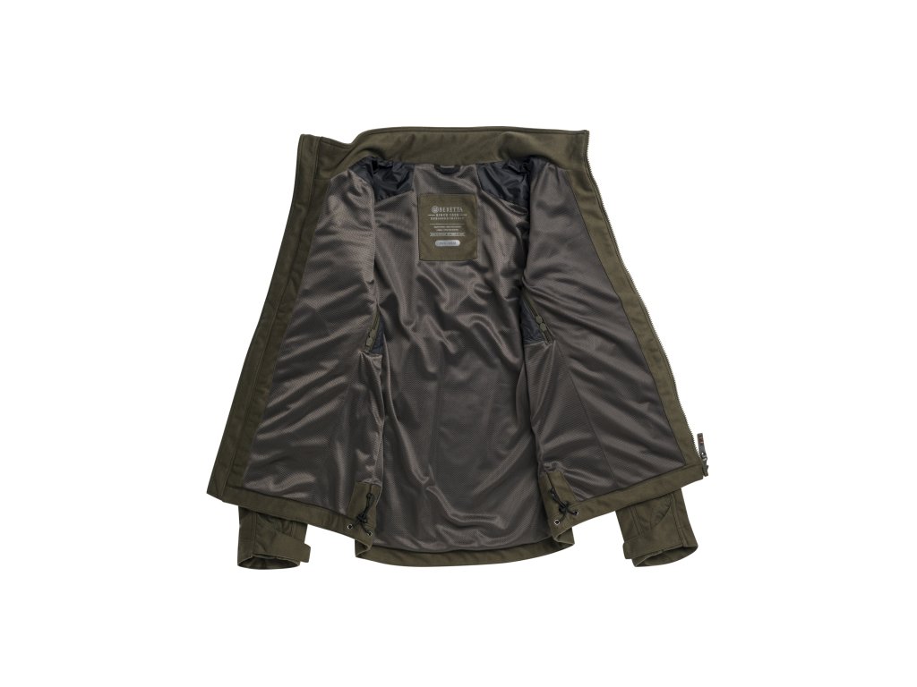 Je větruodolná a voděodolná s prodyšnou membránou Beretta Wind Resistant (BWR). Vnější materiál je tichá polyesterová tkanina s úpravou Durable Water Repellent (DWR).