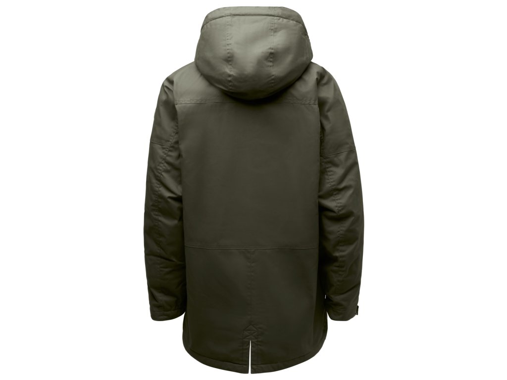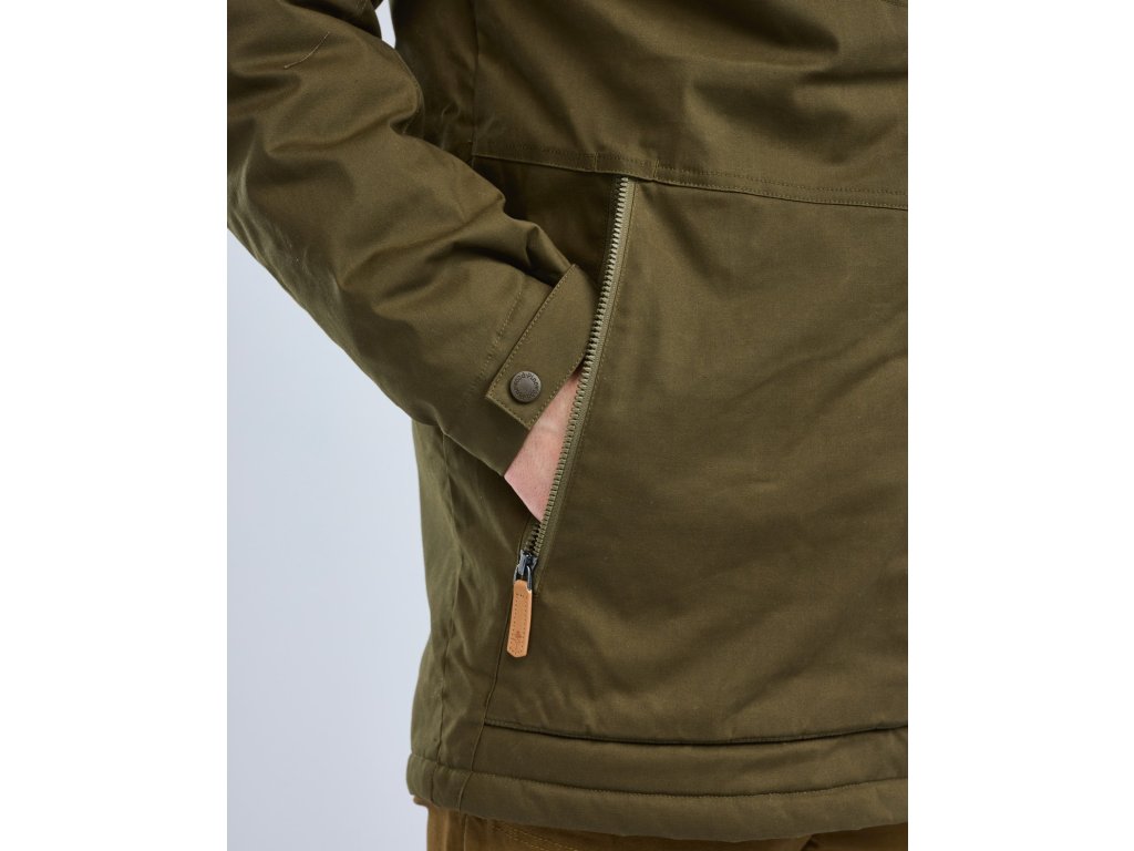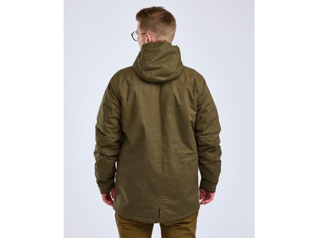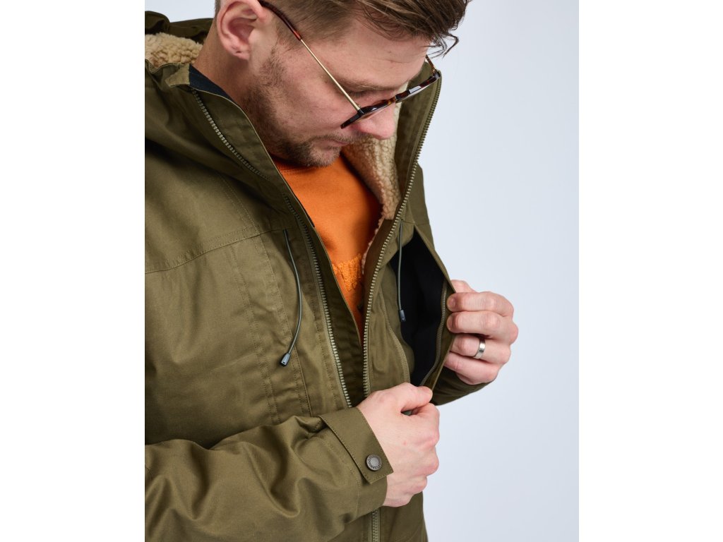 Stylová pánská zimní bunda v klasickém parkovém designu. Zadní část je mírně prodloužená s malým rozparkem pro větší pohyblivost. Tělo je podšito měkkým teddy fleecem, rukávy jsou zatepleny 120g Thermolite®. Bunda je větruodolná s voskovaným TC materiálem, který obsahuje 2směrný streč, což zajišťuje vodoodpudivý povrch. Zabudované manžety na rukávech pomáhají uzavřít chlad a konce rukávů lze upravit pomocí knoflíků. Přední zip je obousměrný, což umožňuje otevření z obou stran. Bunda má velké přední a náprsní kapsy s fleecovou podšívkou a zipem, stejně jako vnitřní kapsu na zip. Detaily z umělé kůže dodávají sofistikovaný vzhled. Kapuce podšitá teddy fleecem může být nasazena pro větší teplo v chladných podmínkách.