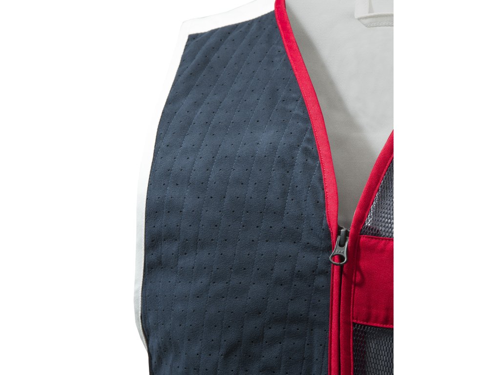 Kluzák vesty je vyroben z mikrosuede s laserově řezanými detaily pro lepší prodyšnost. Tělo vesty je téměř celé z prodyšné a elastické 3D síťoviny. Postranní panely z elastického materiálu zajišťují vynikající přizpůsobení a volnost pohybu. Přední kapsy jsou rozšiřitelné a mají skryté patentky. Zadní část je z komfortní bavlny a lze ji přizpůsobit výšivkou nebo potiskem.