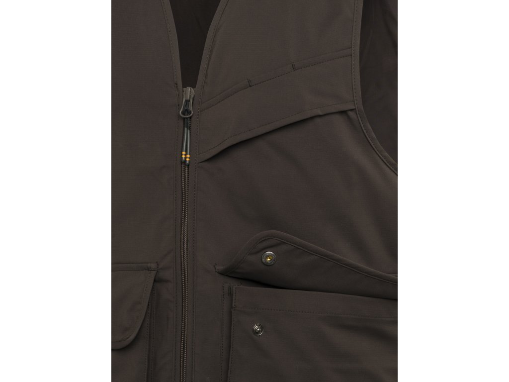 Vnější materiál je polyester ošetřený technologií Durable Water Repellent (DWR). Na ramenou jsou vkládány odolné proti abrazi. Vesta je také k dispozici v oranžové barvě s vysokou viditelností certifikované podle normy EN 17353:2020.