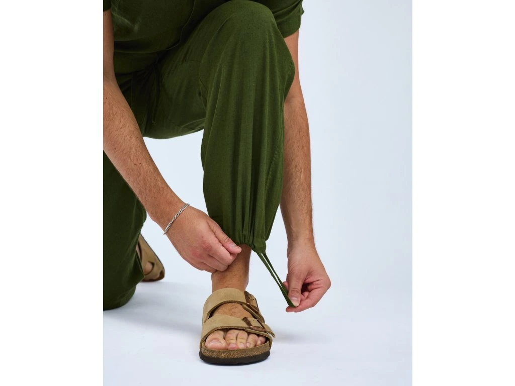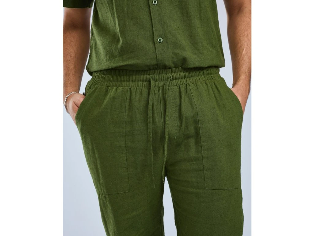Tyto pánské kalhoty z lněné směsi nabízejí dokonalou rovnováhu mezi pohodlím a funkčností. Přírodní konopné vlákno zajišťuje prodyšnou tkaninu, která je chladivá a jemná na dotek i během nejteplejších dnů. Materiál je snadný na údržbu a zachovává si tvar i komfort i po opakovaném praní. Kalhoty jsou vybaveny otevřenými kapsami na ruce a zadními kapsami, stejně jako nastavitelnými stahovacími šňůrkami v pase a na koncích nohavic pro individuální přizpůsobení.