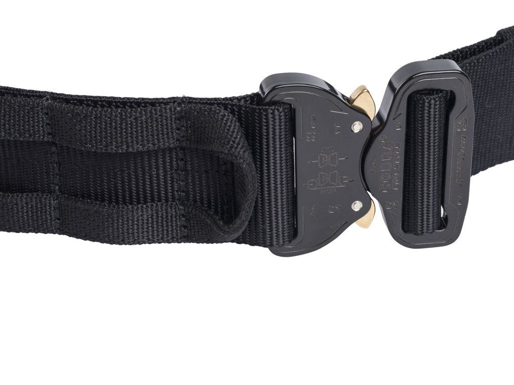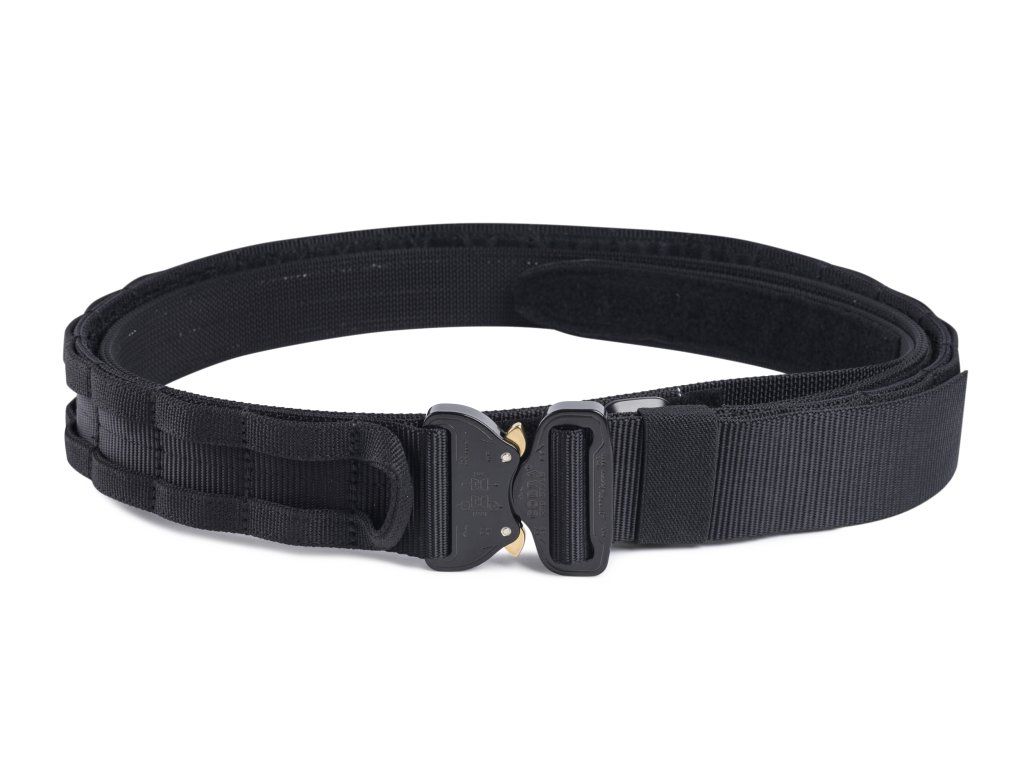 Pohodlný vnitřní opasek je pomocí vysoce pevného suchého zipu připevněn k vnějšímu opasku. Vnější opasek používá zapínací systém AustriAlpin® Cobra® pro maximální pevnost a možnost nastavení. Opasek je navíc plně přizpůsobitelný díky odolným vnějším kroužkovým úchytům pro připevnění pouzder na zbraň, zásobníků a dalších sumek.