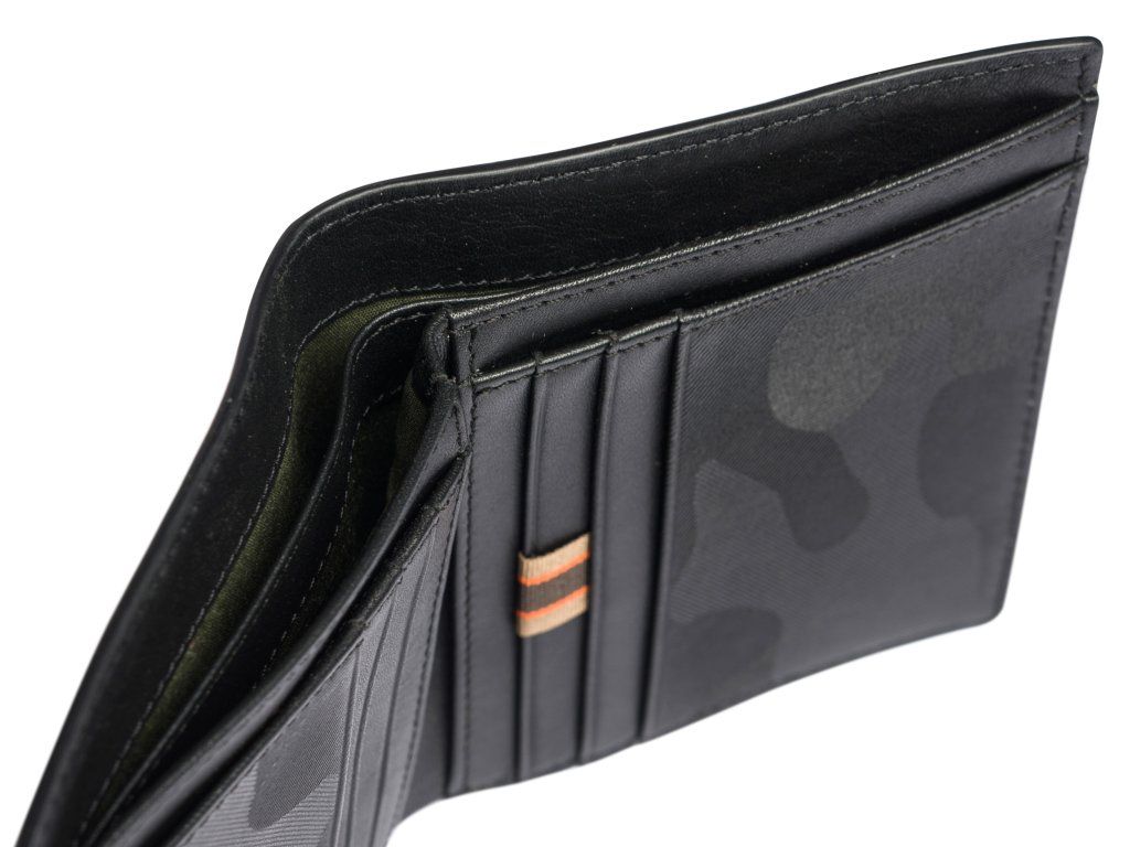 Šest přihrádek na karty, dvě přihrádky na bankovky a kapsa na mince na zip