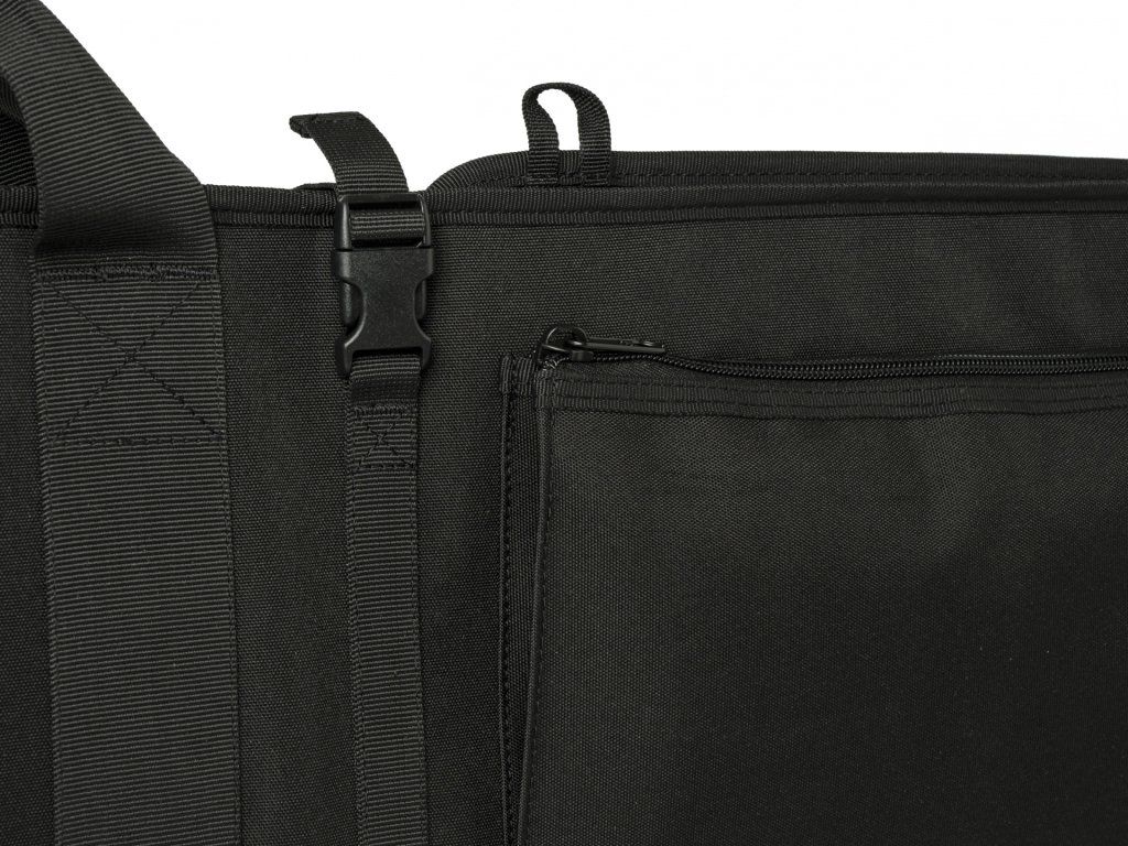 Pro pohodlnou přepravu a rychlý přístup lze pouzdro bezpečně připevnit k opěrkám hlavy v autě pomocí popruhového systému s přezkami, což umožňuje bezpečné uložení pušky za sedadly. Delší systém šňůr poskytuje široké možnosti nastavení a dvě velké přední kapsy nabízejí prostor pro uložení dvojnožky, tlumiče a střeliva.